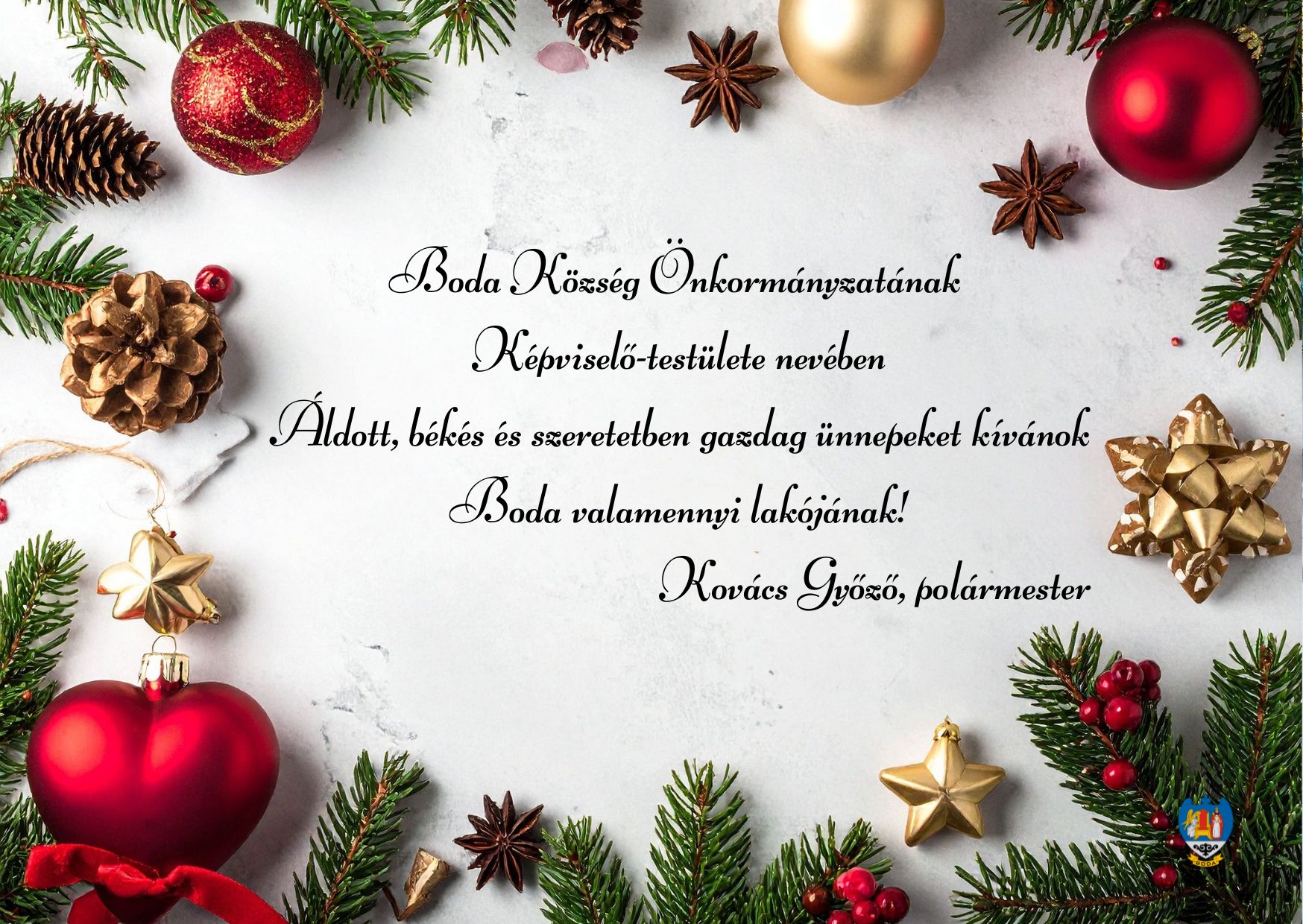 Boda Község Önkormányzatának Képviselő-testülete nevében szeretetteljes, áldott karácsonyt kívánok Önöknek és szeretteiknek!