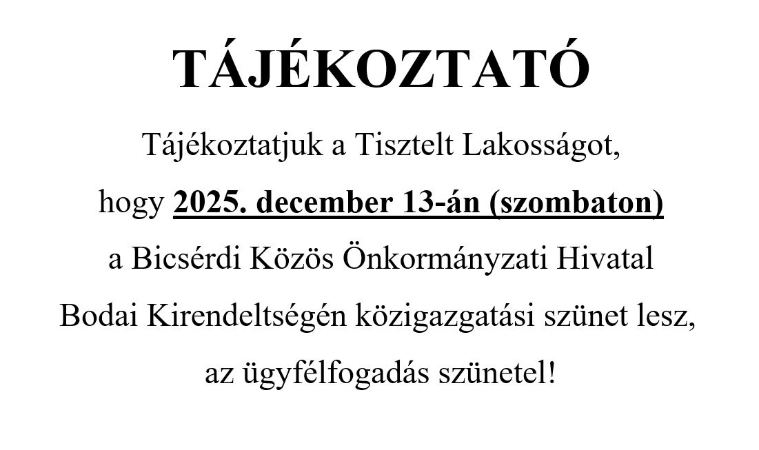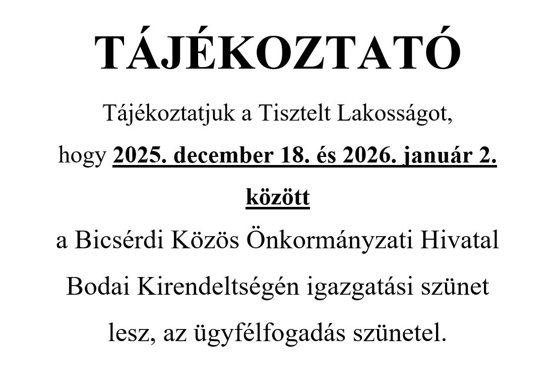 TÁJÉKOZTATÓ - igazgatási szünetről