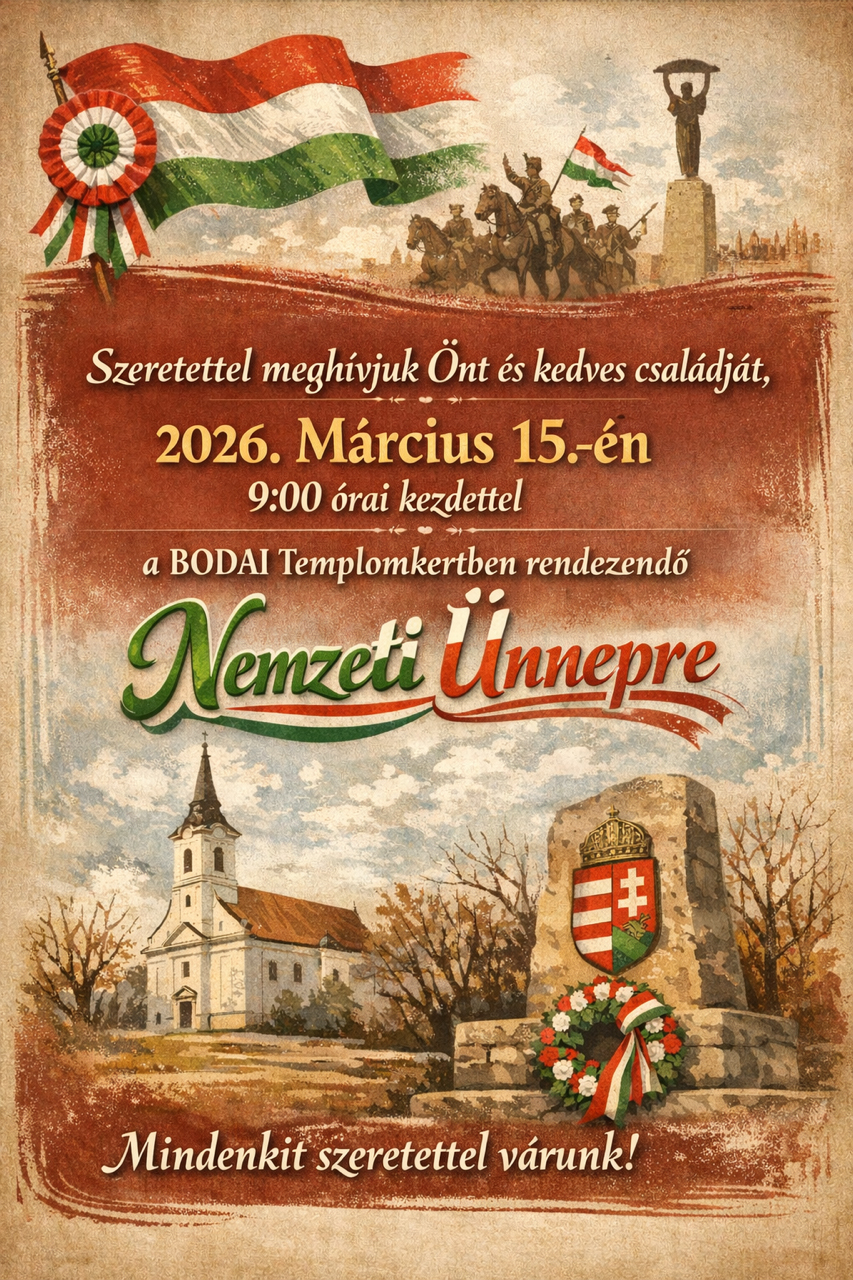 Bodán 2020. március 15.-re tervezett ünnepség a járványveszély miatt elmarad! |
